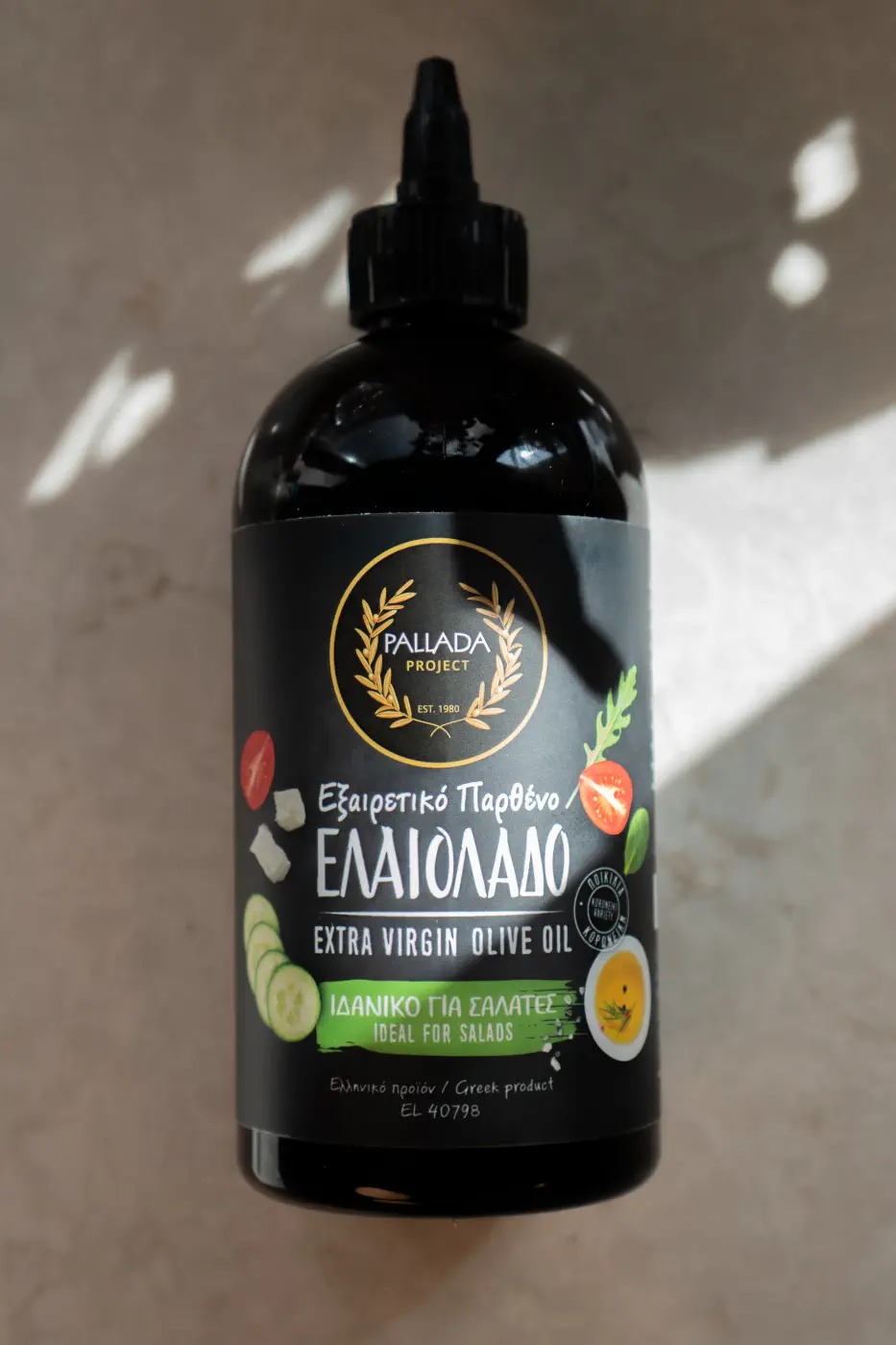 Pallada Extra Virgin Olive Oil is produced from our olive groves in Akrotiri, Chania, exclusively from the fruit of the Koroneiki variety, which has been recognized by the International Olive Council as a world heritage variety. More specifically, the olives are carefully harvested and transported from the field to the oil mill in plastic boxes and linen bags, placed in a way that prevents stacking and at the same time ensures adequate ventilation. Then, the oil extraction takes place within a few hours of harvest, with cold pressing and controlled processes, ensuring the quality and natural characteristics of the olive oil. The result is an extra virgin olive oil of superior quality, with high nutritional value. It is rich in polyphenols and antioxidants, containing valuable nutrients that make it a solid choice for a balanced diet. The new practical squeeze packaging offers ease of use and better control over dosage. Ideal for salads.